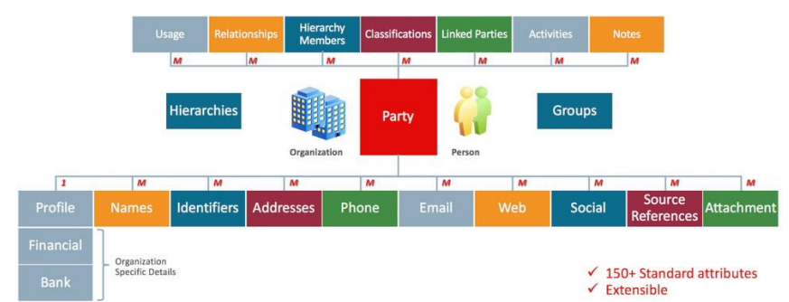 cloud services uses standard underlying data model to store party information.