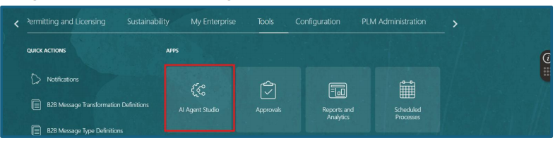 Navigation: Home ->Tools ->AI Agent Studio