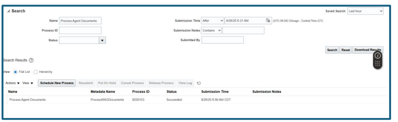Execute the ESS process “Process Agent Documents” [no parameter required].