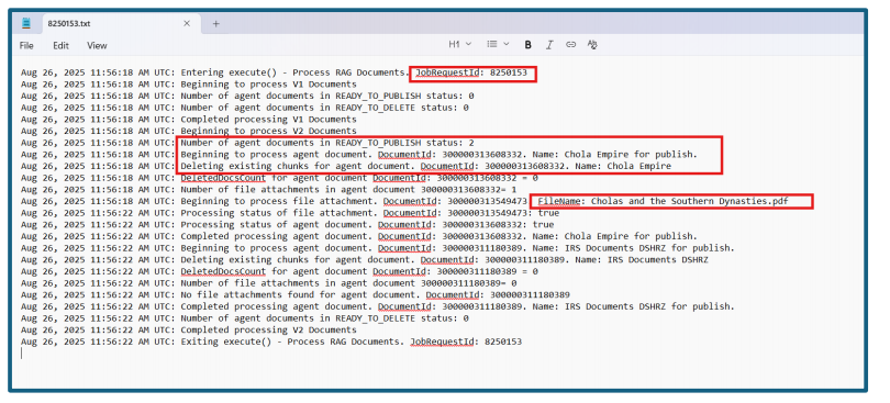 Check the Log/Output file to verify the document got published.