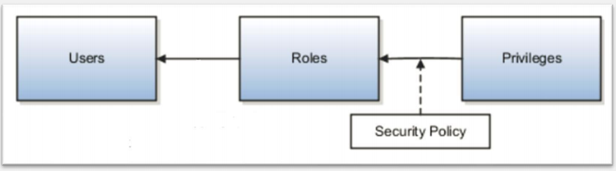 duty role may also acquire data security policiesindirectly from its aggregate privileges. These are the components of a data security policy: