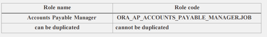 AR_NA_ACCOUNTS_RECEIVABLE_SPECIALIST_JOB. - Note: Do not use “ORA_” as the beginning of a role code. This prefix is reserved for roles predefined by Oracle. You can’t edit a role with the ORA_ prefix.