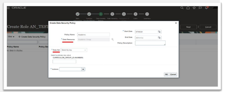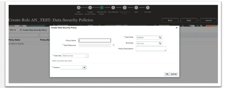 For a given duty role, you may create any number of data security policies. Each policy selects a set