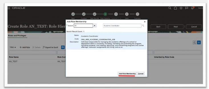 Search for the role that you want to assign to the user and the click Add Role Membership button. The