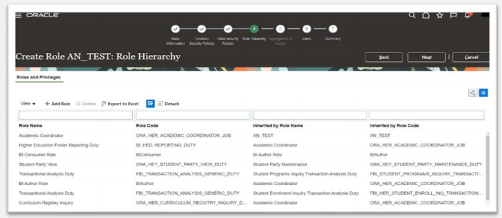 Approval Duty, GL Journal Posting Duty etc.. Here are some duty role characteristics: They group multiple function security privileges. They can inherit aggregate privileges and other duty roles. You can copy and edit them. Job and abstract roles may inherit duty roles either directly or indirectly. You don’t assign duty roles directly to users. The name of this role has the suffix_DUTY. Duty Role Components