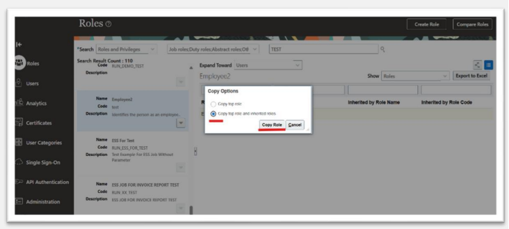 By default, the name and code of a copied role match the source role’s, except a prefix, suffix, or both are