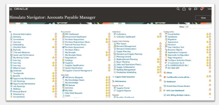 Select Show All to view all the menu and task entries that may be included in a Navigator menu.