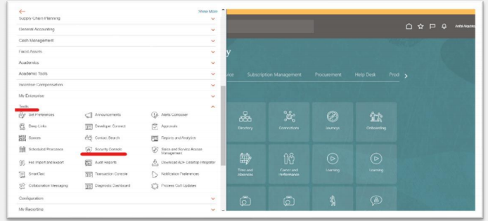 Security Console is a centralized tool that empowers administrators to manage security across various Oracle Fusion Applications and services.