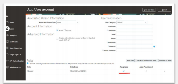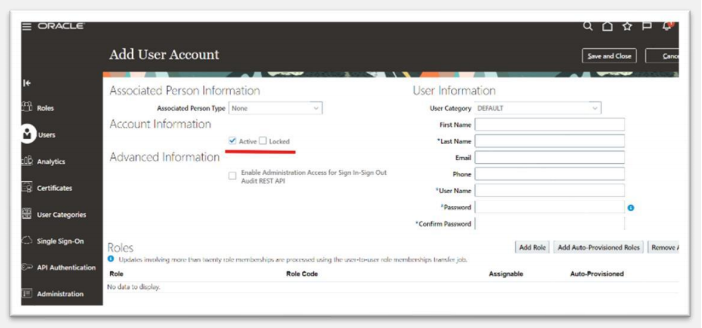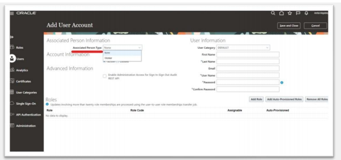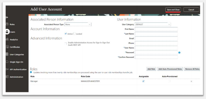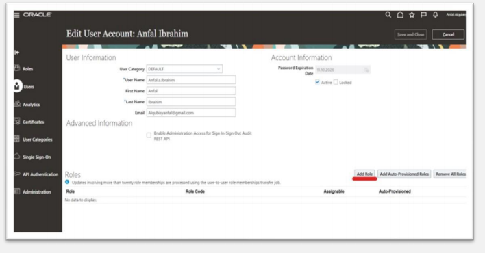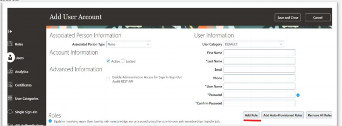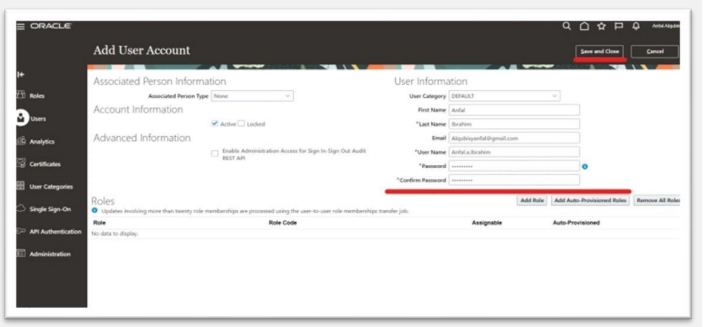 check here how to create user and assign roles in oracle fusion