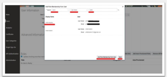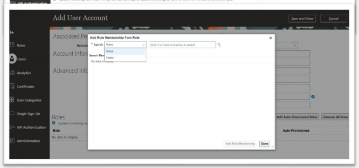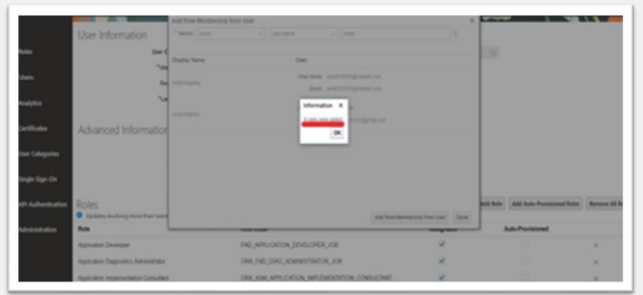 Select the user and click Add Role Membership from User. A confirmation message appears. Click OK and click Done.