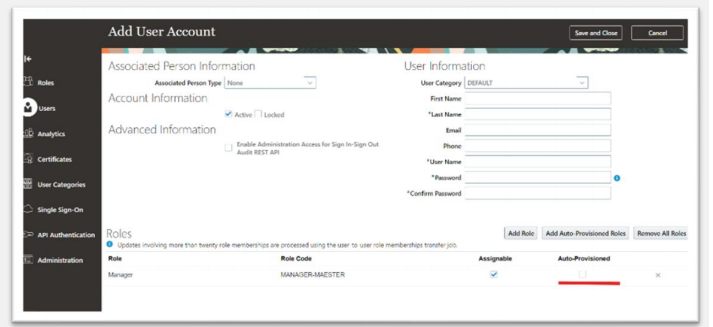 Click the Add Auto-Provisioned Roles button to add any roles that the user is eligible for, based on role