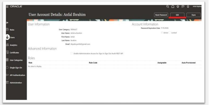 On the User Account Details page, click the Edit button.